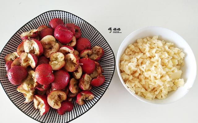 食材:山楂3斤,苹果一个,冰糖十克,蜂蜜50克。