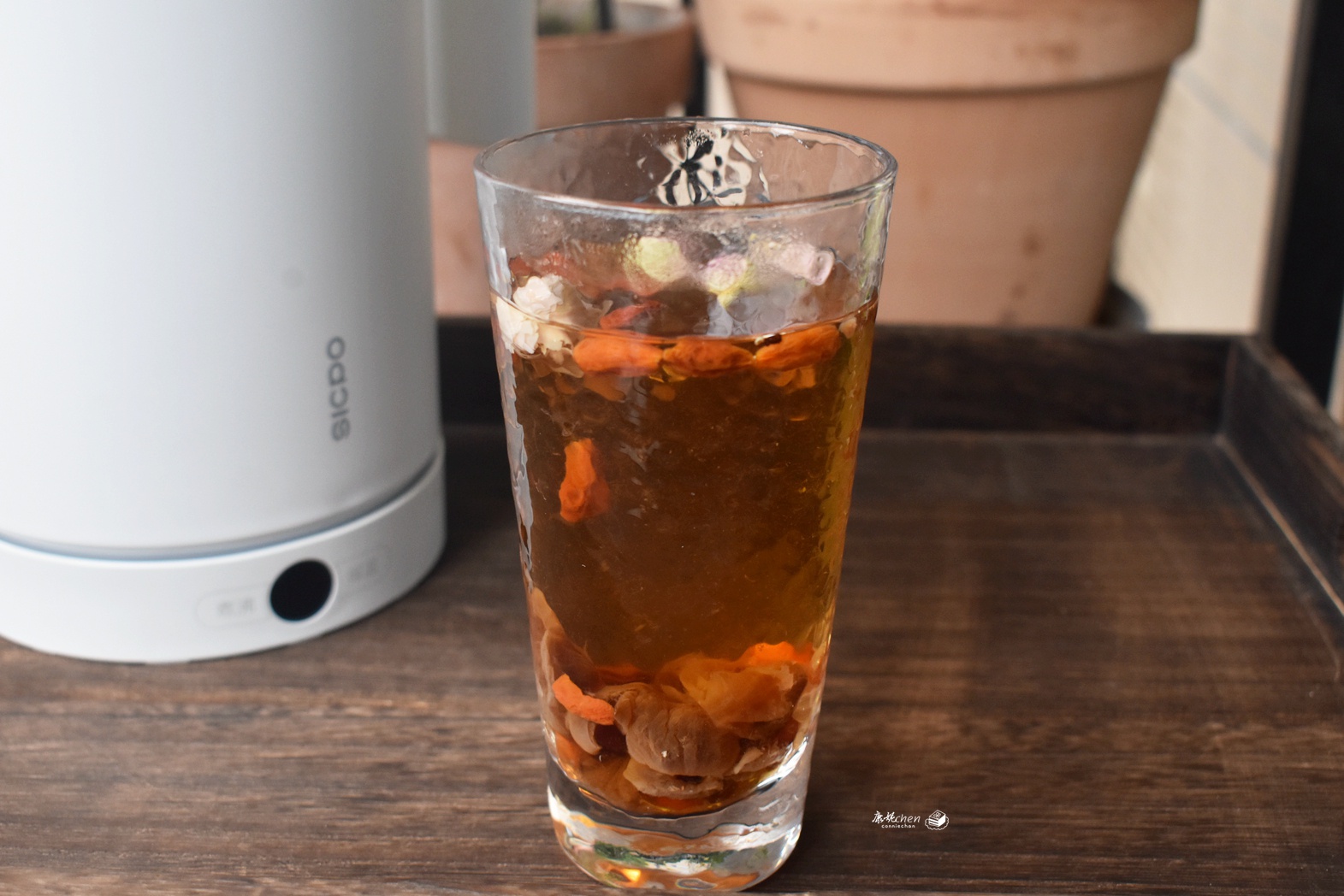 【红枣桂圆玫瑰花茶】冬天天气寒冷,很多人手脚冰凉,多喝红枣桂圆茶身体变暖和。