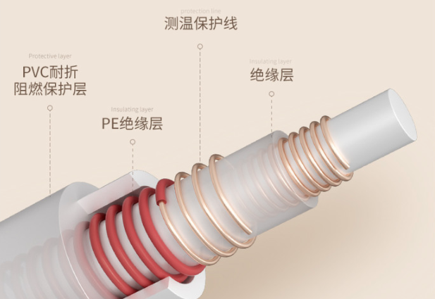 这种双螺旋发热丝,内置合金丝螺旋发热线,自带温度检知线,可以实时控温,绝缘保护,防水阻燃,就算小孩子尿床了也不用怕。