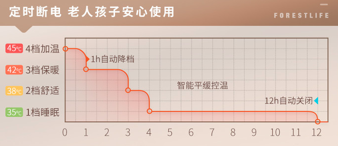 就算开一晚上,第二天起来也不会觉得干。自带定时功能哪怕你忘了关电热毯也不用担心它会一直加热。