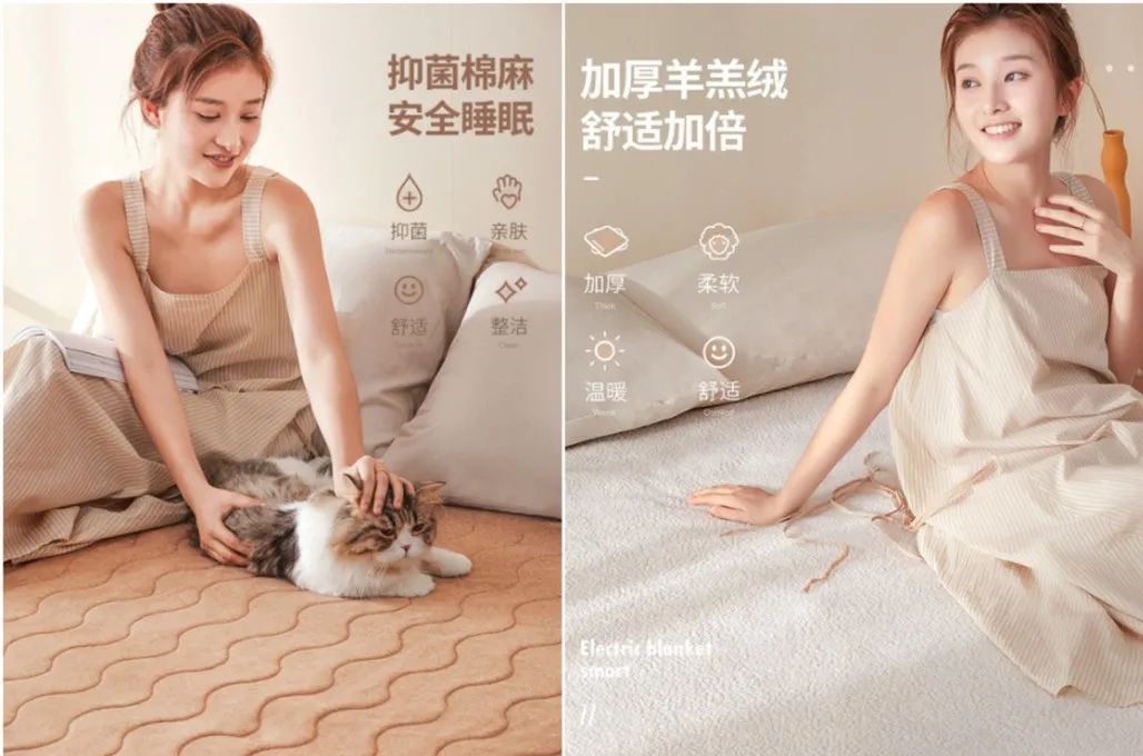 它和别的电热毯都不一样,采用双面加厚的设计:
