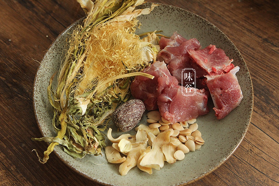 【材料】:霸王花3朵、猪骨400克、无花果20克、蜜枣1个、南北杏6克、姜2片、盐适量