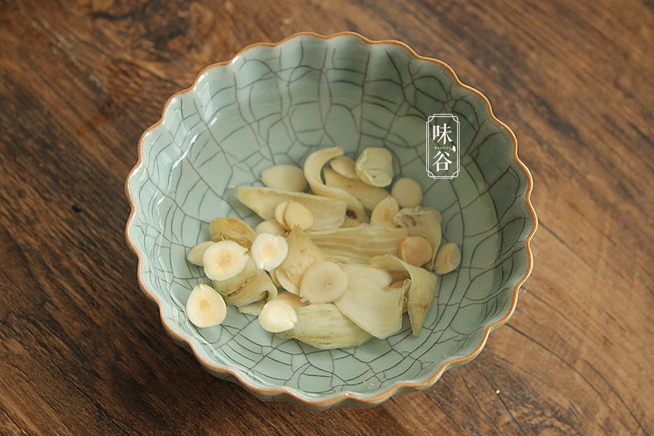 2、南北杏、百合洗干净即可,注意一点的是我放的杏仁有两种,一种是南杏仁,一种是北杏仁,南杏仁是甜的多为食用,北杏仁是苦的多为入药,这些杏仁的分量要求不多,各自不超过3克即可;