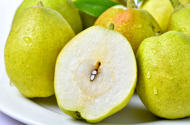 梨,鲜嫩多汁,含有多种维生素和纤维素,有“百果之宗”的美誉。梨的热量低,含水量高(含水量大约在80%以上),纤维素多,不仅能起到补水的作用,还容易让人饱腹,可以说是一种可以瘦身的水果了。冬天空气干燥,可以每天坚持食用一定量的梨,可以润燥。===PEI_PAGER_PEI===