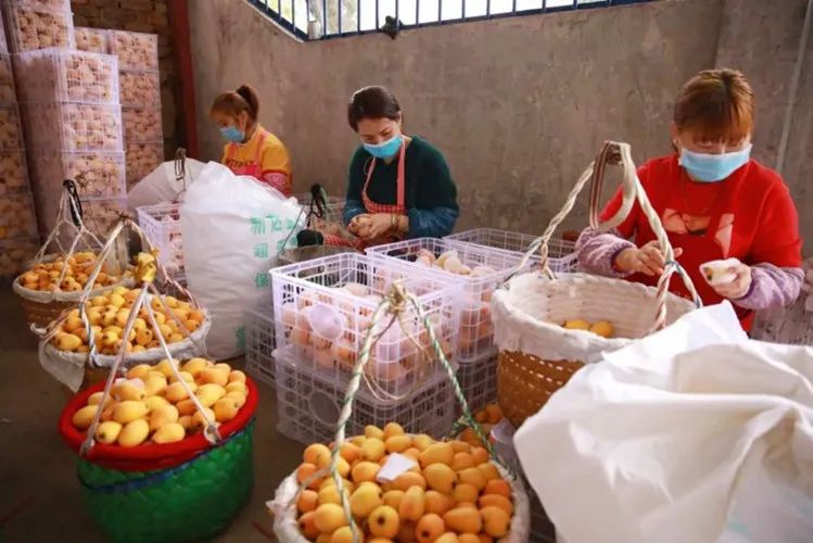 (村民按要求包装枇杷)