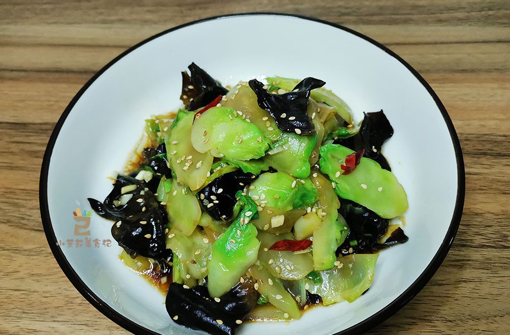 食材:儿菜4个,黑木耳6朵,干辣椒1个,大蒜2瓣,白芝麻少许,香油少许,凉拌生抽1勺,香醋1勺,食盐适量,白糖少许,玉米油适量