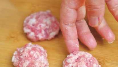 5.把猪肉泥团成一个个小圆饼状。