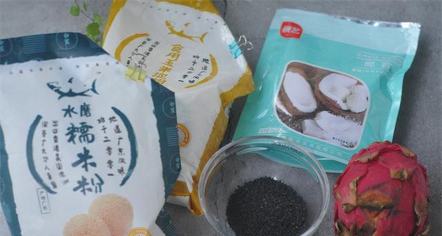 主材料糯米粉200克玉米粉40克火龙果肉泥400毫升糖30克玉米油25克