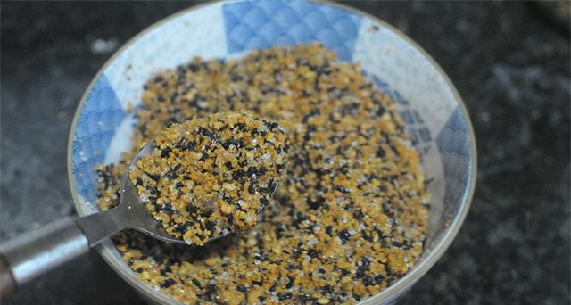 黑芝麻也一样炒烤,用打粉机捣碎,黑芝麻比较小,不打也没关系。