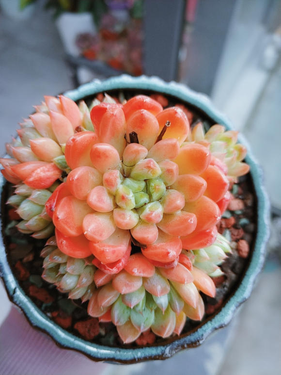 如果你家有一个露台或者是阳台,把多肉最好能放在室外的环境下养护,接触自然光照,通风条件也更好,多肉的根系也会更加发达,所以说在自然环境下,多肉出状态的时间会略长一些,这一点我们无需担心,顺其自然,其实养多肉,没有必要去追求全状态。
