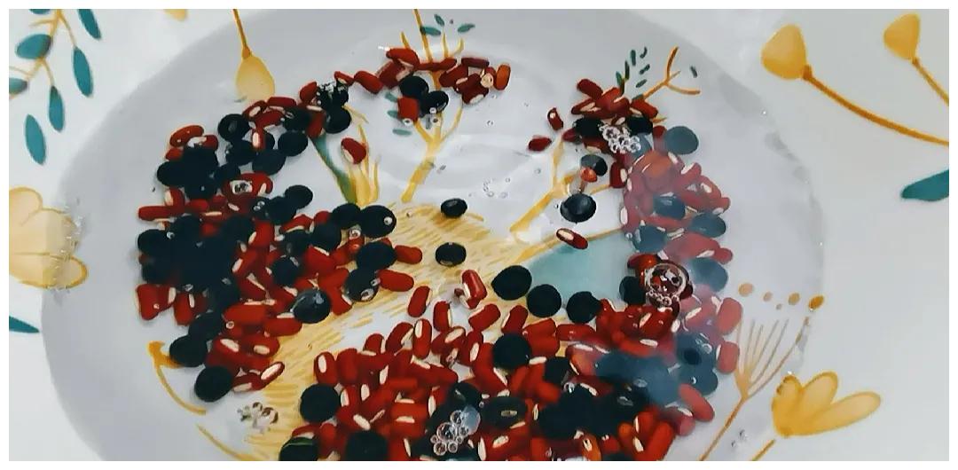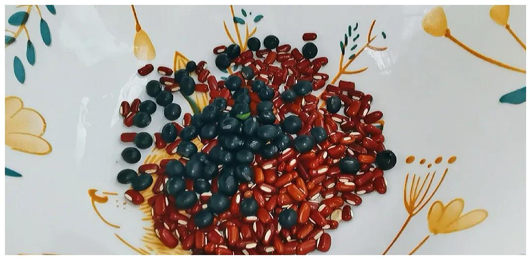 把赤小豆、黑豆清洗干净。赤小豆是这种细长的红豆,有很好的祛湿消肿的作用,大家千万不要用成椭圆形的红豆啦。