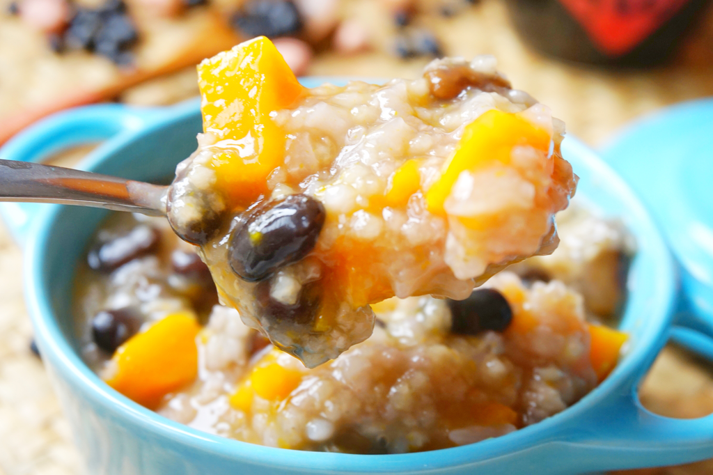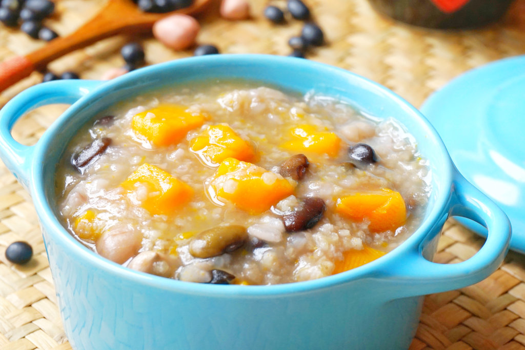 食材用到了南瓜,黑豆,糯米,大米,小米,花生,都是比较常见的食材,而且价格也非常便宜,南瓜是这个季节应季的食材之一,南瓜具有保护胃黏膜帮助消化的作用,尤其是南瓜中果胶的含量非常丰富,它能够避免粗糙的食物刺激肠胃,能够促进胃肠溃疡的愈合,有胃肠疾病的人应该多吃南瓜,南瓜也能够促进胆汁的分泌增加胃动力,帮助消化。