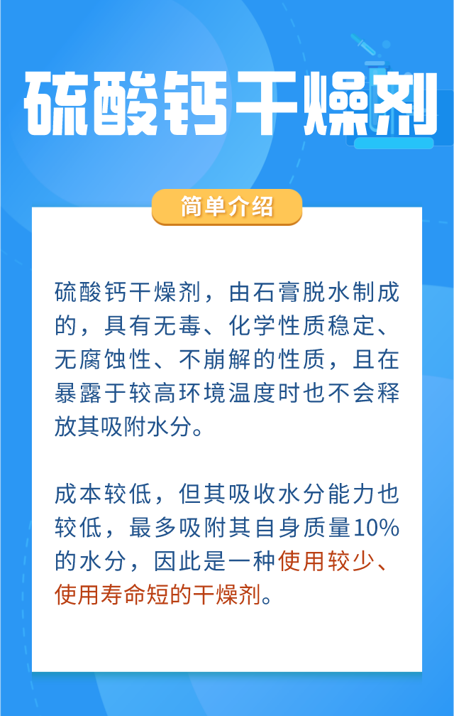 一种是 化学干燥剂 ,如氧化钙、硫酸钙等,通过与水发生化学反应进行干燥;