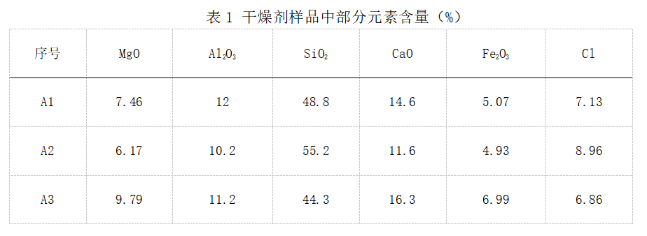 其次是B类干燥剂,标准原文中是这样定义B类干燥剂的——以凹凸棒土为主体材料的球形干燥材料。但就市场抽样检验的情况来看,近年来不断有生产企业钻干燥剂标准的空子而掺假使伪,这些厂家主要抓住标准中无成分鉴别和理化特性的要求,在凹凸棒土中加入一种或几种其他干燥剂特性的物质。若按标准规定的方法检验,结果均符合规定。我们从市场上取样,并按照X射线荧光分析法和T/SDG 002-2020《中空玻璃用干燥剂中掺杂物(氯化钙、氧化钙)检出的试验方法》针对样品中部分元素含量和CaCl2含量进行检验。