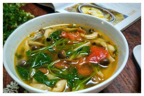 【海鲜菇菠菜汤】