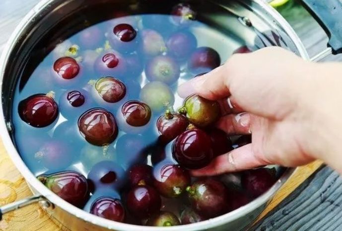 洗葡萄也有方法,不能只用水冲洗,这样做太不卫生了,正确方法应该是这样,用剪刀把葡萄一粒粒剪下来,再用水清洗两遍,重新加水后放入一勺面粉、一小勺小苏打,搅拌几下,浸泡五分钟。时间到了抓洗几下,捞出葡萄,用水冲洗一下,再放进凉白开或者纯净水里浸泡五分钟,这样葡萄就干净了,放心吃不怕有脏东西或者虫卵。