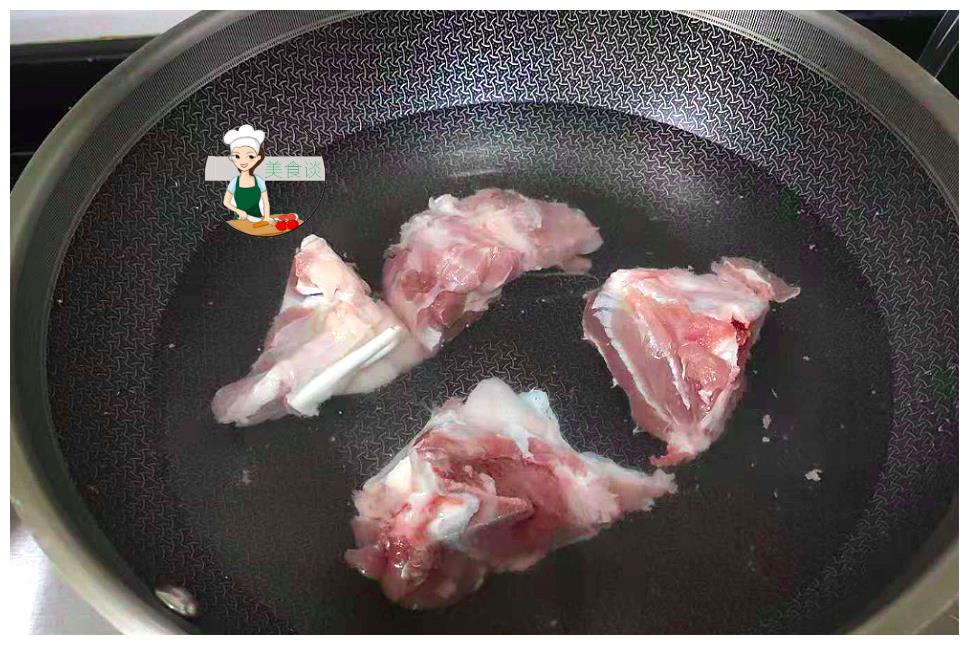 3、锅里加入适量的清水,将猪骨冷水下锅焯水,捞起冲洗干净沥干水分待用。