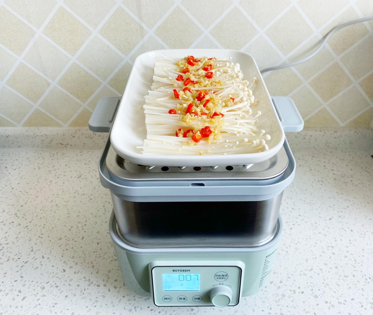 1、因为金针菇很容易熟,所以蒸的时间不能太久,大概六七分钟就行。