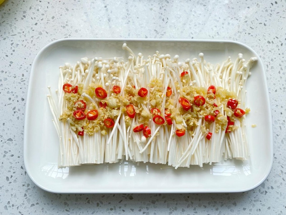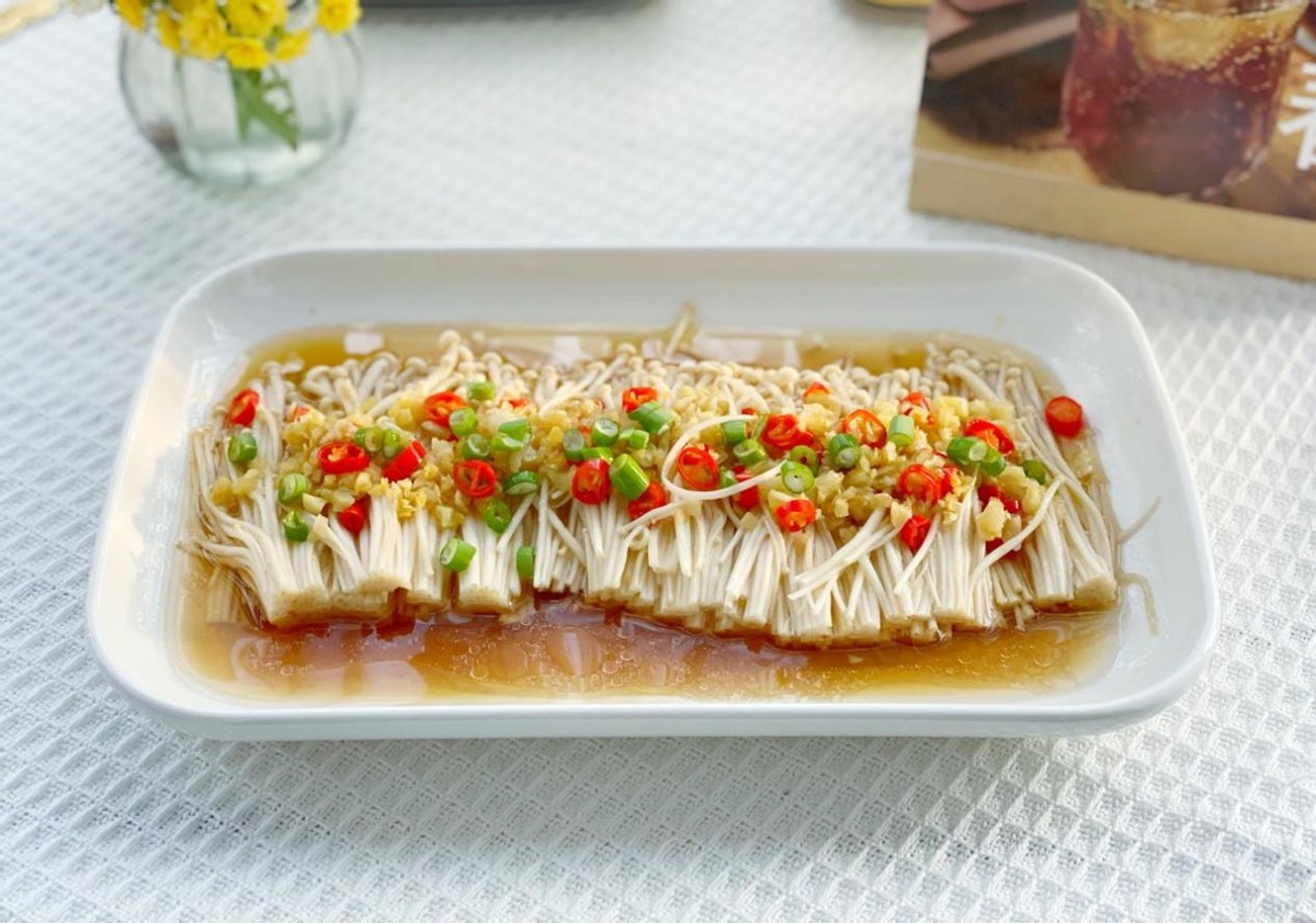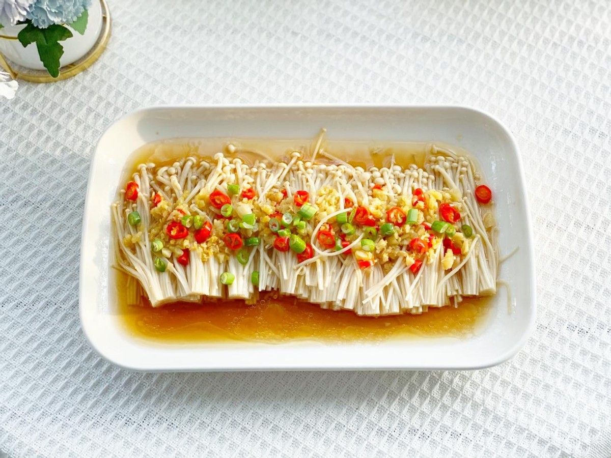天气干燥多吃多吃蒜蓉蒸金针菇,润肺作用强,还是美容佳品