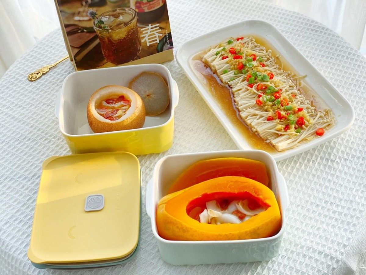 【所需菜品】:#蒜蓉金针菇#金针菇300克、蒜半头、生抽1勺、蚝油半勺、小米辣3个、植物油适量、#百合蒸木瓜#木瓜1个、鲜百合10克、枸杞子6粒、蜂蜜少许、#冰糖百合蒸雪梨#雪梨1个、鲜百合10克、枸杞6粒、冰糖12克