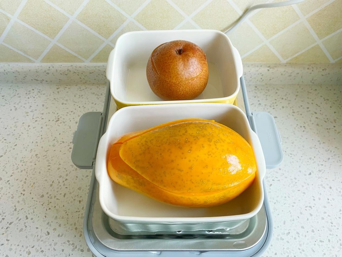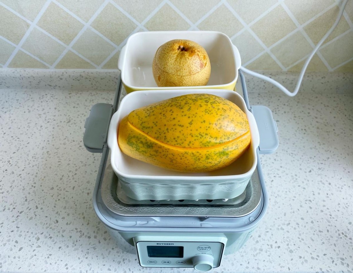 2、在蒸木瓜和雪梨时,要等水开了之后再放在蒸锅上,这样做出来的口感会更好。