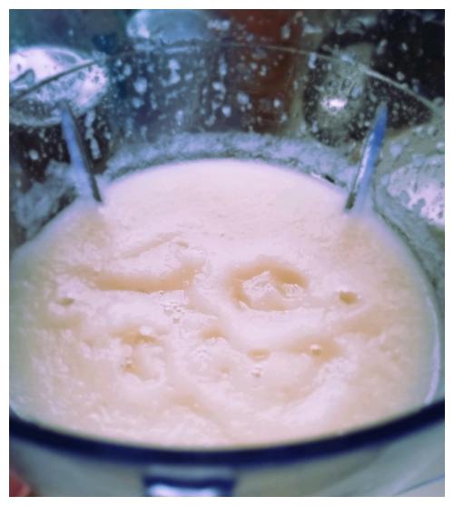 第一步、雪梨去皮后切成小块,放入破壁机中打成雪梨汁,倒入锅中备用。红枣去核后切小块,生姜去皮后姜末,罗汉果用刀拍碎。做秋梨膏不能只用梨,加入红枣、生姜、罗汉果,有更好的保健作用,比如补血暖胃、止咳化痰、清肺润肠等。