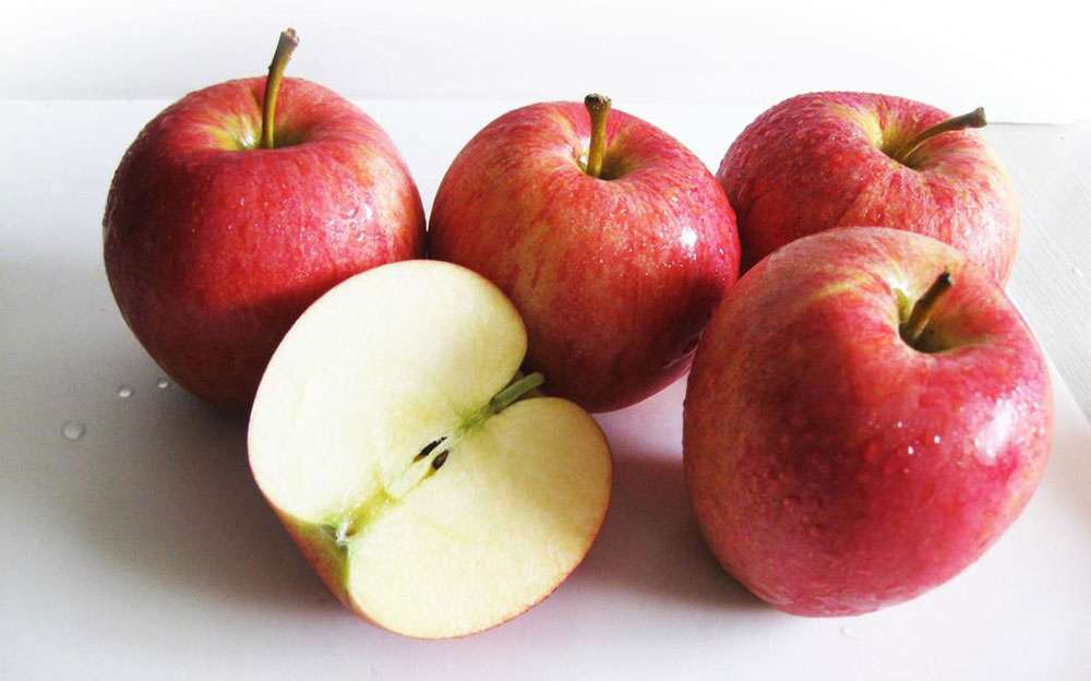 挑选技巧:买苹果时,并不是颜色越红越甜,也不是表皮越光滑越甜。我们要注意选择苹果表面的纹理明显,并且纹理中泛着黄色的。另外我们要注意选择表面摸起来相对粗糙一些的,这样的苹果吸收的光照更多,甜度和养分更高。